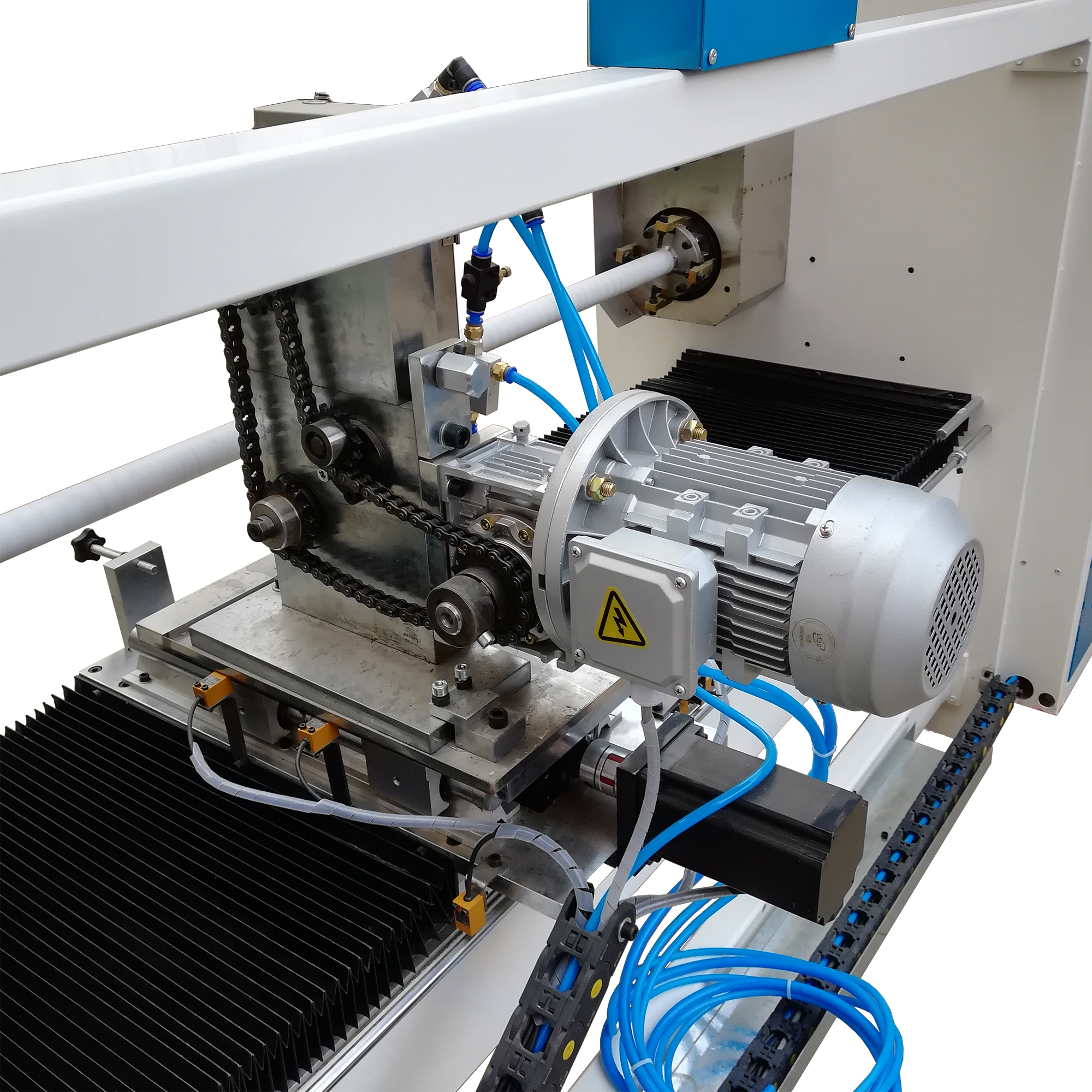 2. 電機控制系統(tǒng)為PLC可程式控制器,同軸中可設(shè)定2種尺寸,電腦于切割時自動調(diào)整切割寬度
